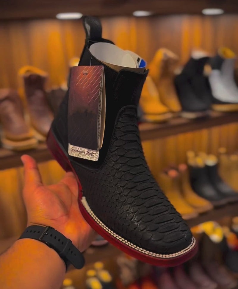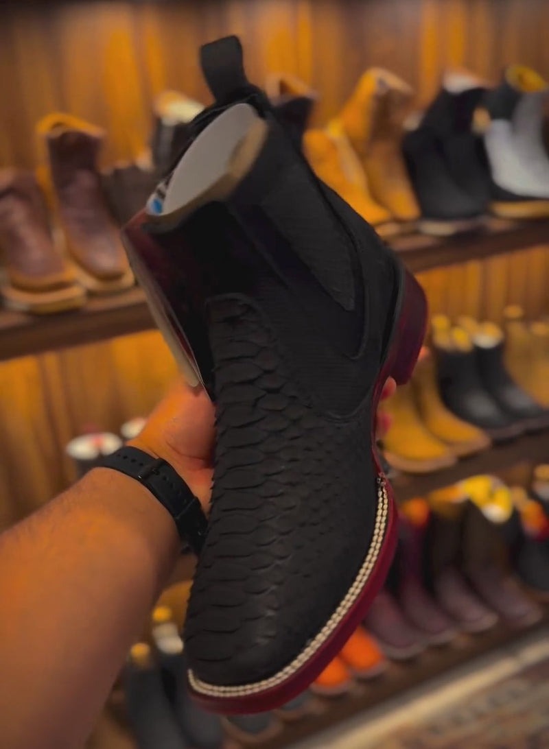 Standing short with an impressive 5" shaft height, these boots make a bold statement. Each pair is meticulously crafted with precision and care. The distinguishing feature of these boots lies in the genuine Python leather, adding a touch of exotic luxury to your ensemble.