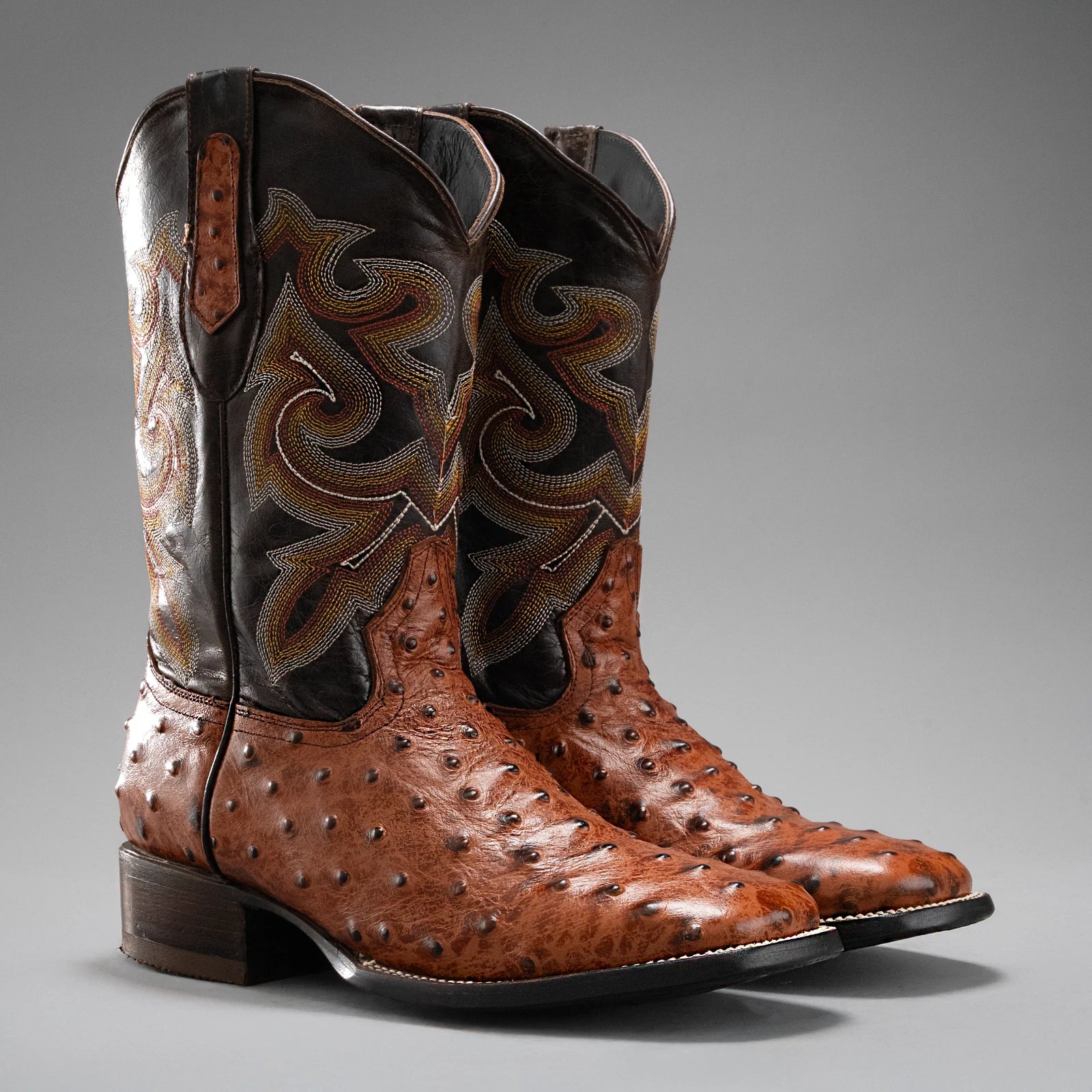 Men's Ostrich Leather Western Cowboy Square Toe Boots
