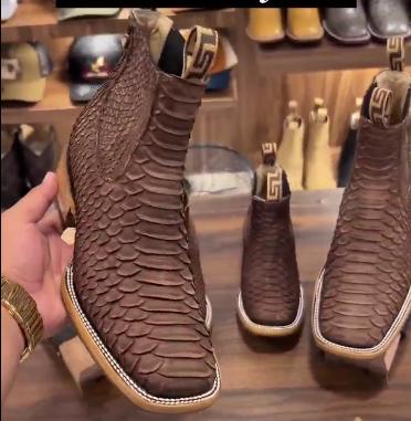 Standing short with an impressive 5" shaft height, these boots make a bold statement. Each pair is meticulously crafted with precision and care. The distinguishing feature of these boots lies in the genuine Python leather, adding a touch of exotic luxury to your ensemble.